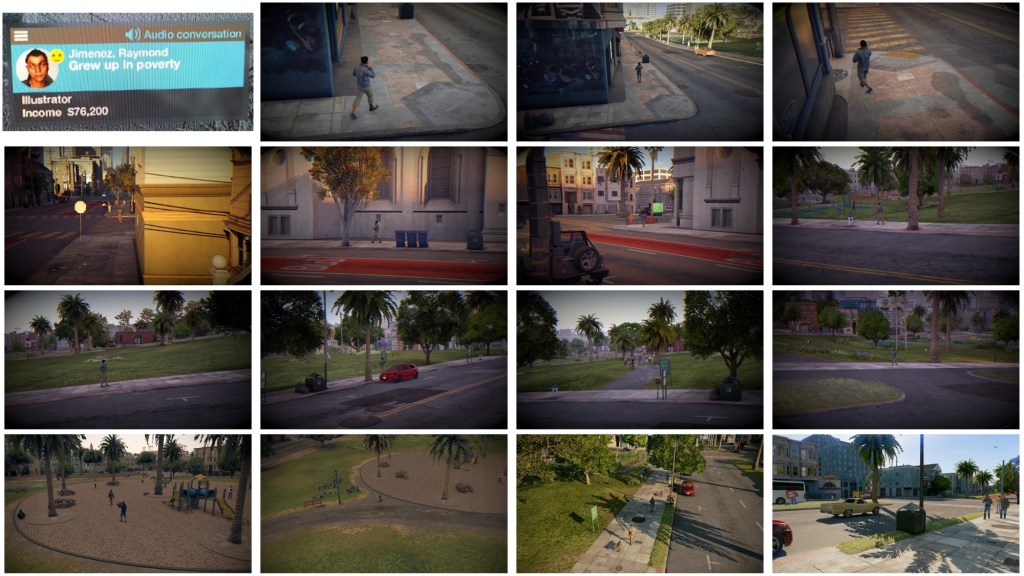 In 2019 I took part in an event at Brunel University led by Alan Butler focusing on Photographical agency in games. As part of this event, I produced the above piece of photography using the surveillance systems in WatchDogs 2 to criticise surveillance both in games and in our lives.
