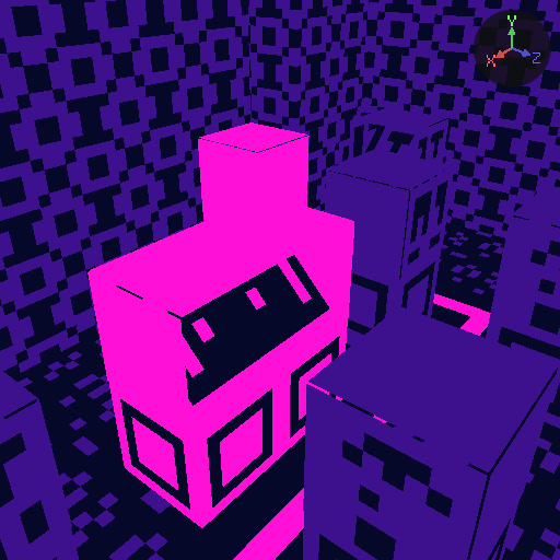 The actual construction of the game consisted of a lot of trial and error. Part of this process came from me seeing how far I could push Bitsy3D as a tool but the majority of it was choosing colour pallets and drawing the art for each area. The art in particular involved drawing slightly different versions of a desired asset and testing and tweaking each one to look visually interesting while staying coherent. A really good example of this trial and error process are the arcade machines which consist of six unique assets which have modified x, y, and z values for each machine depending on its orientation.