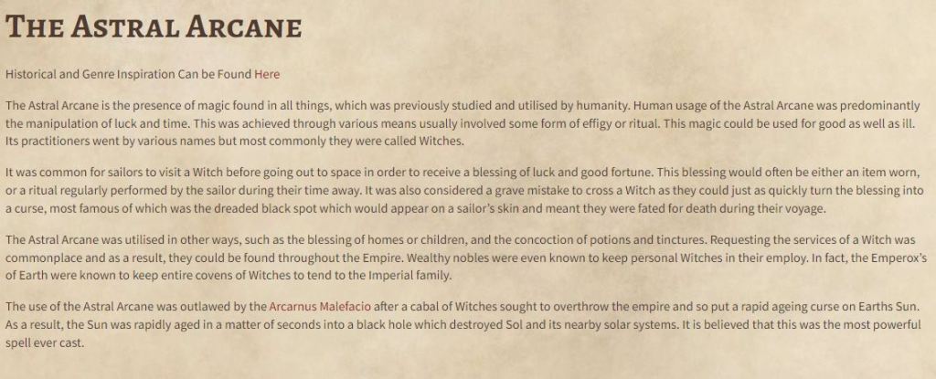 Creating this began with a 13 Page Games Design Document and then expanded to a wiki for all the main elements of the world such as its magic system, culture, and factions. Both of these documents can be accessed through the buttons below.